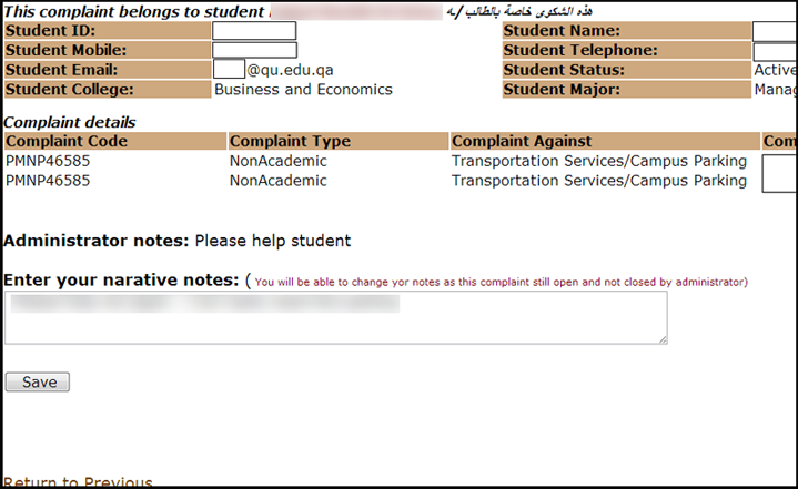- قم بكتابة التظلم في المربع أدناه ثم اضغط علىSave .